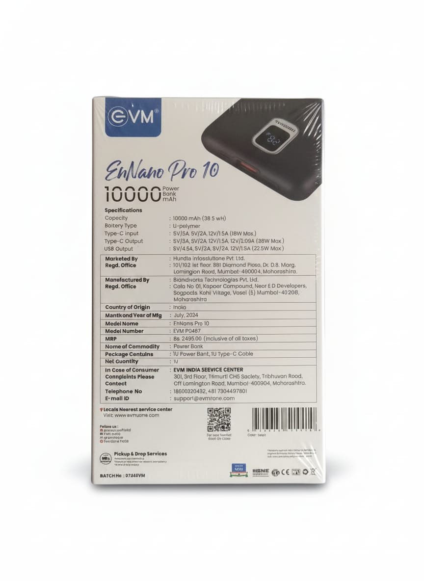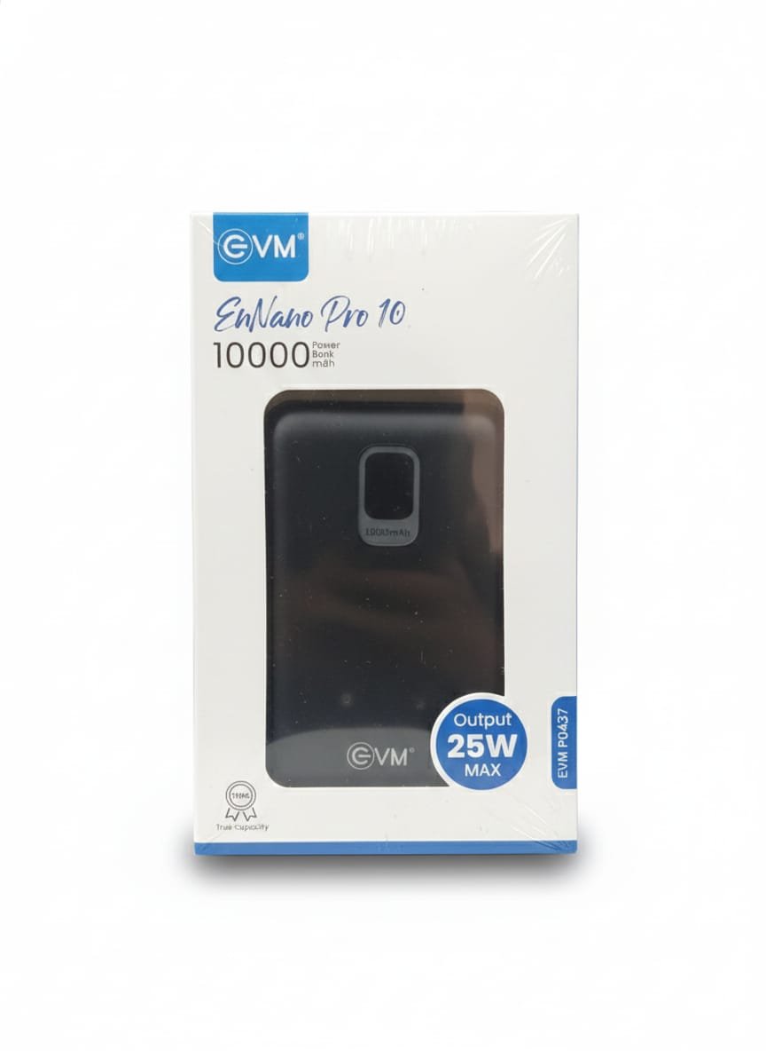 Stay powered wherever you go with the EVM EnNano Pro10 Power Bank, designed for fast, reliable, and efficient charging. Featuring a 10000mAh high-capacity battery and 25W fast output, this compact power bank ensures your devices charge quickly and safely throughout the day.