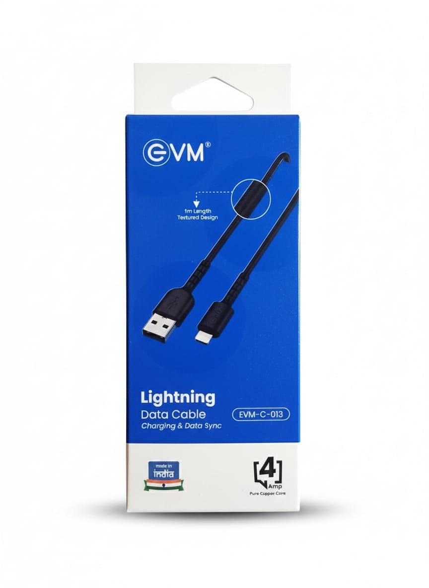 Featuring a USB to Lightning connector, it provides a secure connection for consistent charging and smooth data synchronization. Backed by a 1-year warranty and free delivery, the EVM Lightning Data Cable delivers dependable quality at an excellent value.